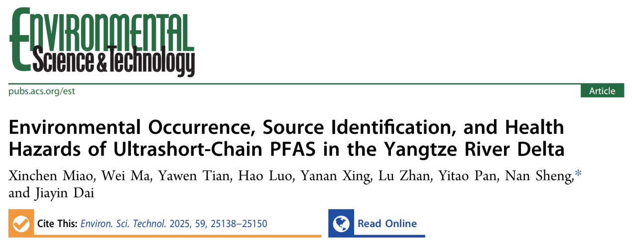 Xinchen Miao et al., Environmental Occurrence, Source Identification, and Health Hazards of Ultrashort-Chain PFAS in the Yangtze River Delta. Environ. Sci. Technol. 2025, 59 (47), 25138-25150. DOI: 10.1021/acs.est.5c09274